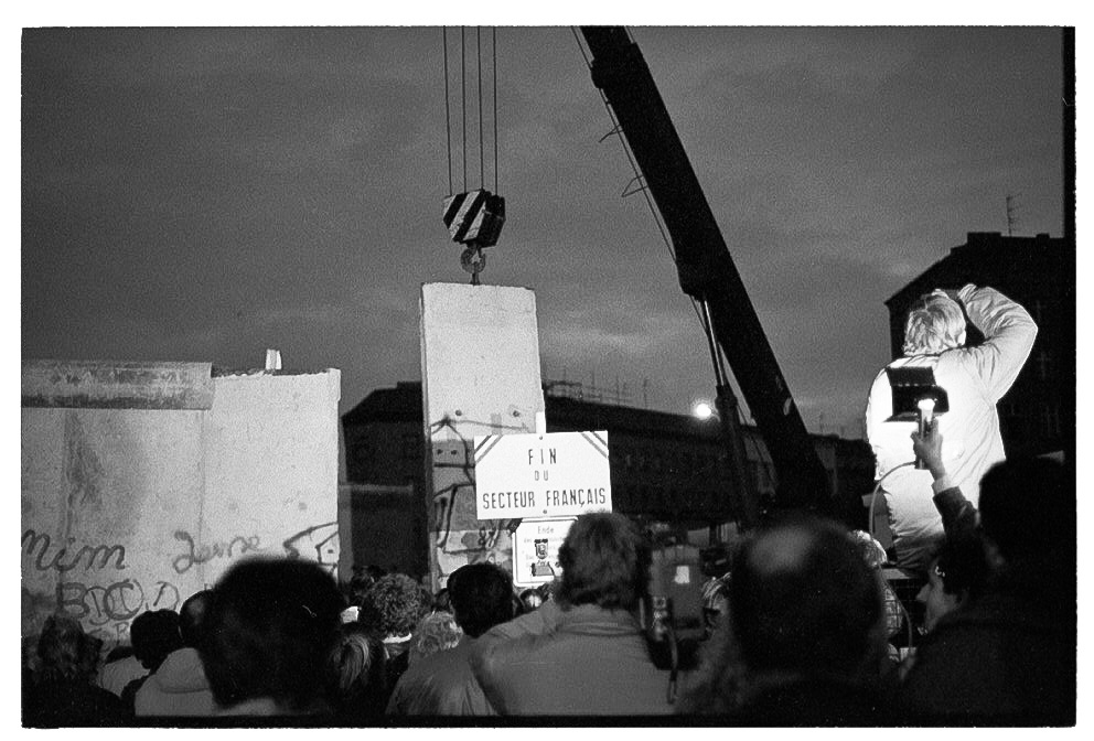 Wir sind nur drei oder vier, die es wagen, sich auf der Ostseite herunterzulassen und DDR-Boden zu betreten. Es ist ganz einfach, die Feuerwehrschläuche sind hilfreich. Jemand reicht mir meine schwere Kamera herunter, als ich unten bin. Dann bewege ich mich langsam auf das große Tor zu. So nah war ich ihm noch nie, ich fasse die kalten Wände an. Es ist eine Mischung aus Ehrfurcht, Angst und völliger Überwältigung. Ich erlebe gerade das Ende einer Republik, denke ich mir. Ich bin ein winziger Teil eines historischen Ereignisses, das kaum ein paar Stunden alt ist und dessen Ausgang noch niemand kennt. An den mächtigen Säulen des Tors sehe ich die vielen Einschüsse aus dem zweiten Weltkrieg. Die jubelnden und skandierenden Menschen hinter mir auf der Mauer nehme ich nicht mehr wahr. Rechts und links von mir ist auch keiner mehr. Ich bin ganz alleine. Es dauert einen Moment der Besinnung, dann durchschreite ich mit angemessenem Schritt dieses majestätische Monument in Richtung Osten, gehe immer weiter, mache ein paar Fotos, drehe mich um und gehe wieder weiter, bis ich an dem kleinen Zaun am Ende des Pariser Platzes ankomme. Dort wo im Osten "Unter den Linden" beginnt. Die wenigen Volkspolizisten sind wortkarg, aber sehr freundlich. Sie wirken irritiert aber irgendwie erleichtert auf mich, sie lächeln zaghaft und lassen mich gewähren. Weit hinter mir folgen die zwei, drei anderen Menschen, die auch von der Mauer heruntergeklettert sind, sonst niemand. Bin ich wirklich der erste Zivilist, der soeben nach 28 Jahren wieder durch das Brandenburger Tor gegangen ist? Ich kann es nicht sicher sagen, ein unglaublicher Gedanke! Aber so schnell wie er gekommen ist, so schnell verschwindet er auch wieder. Es ist in diesem Moment nichts unwichtiger, als der Erste zu sein oder nicht.