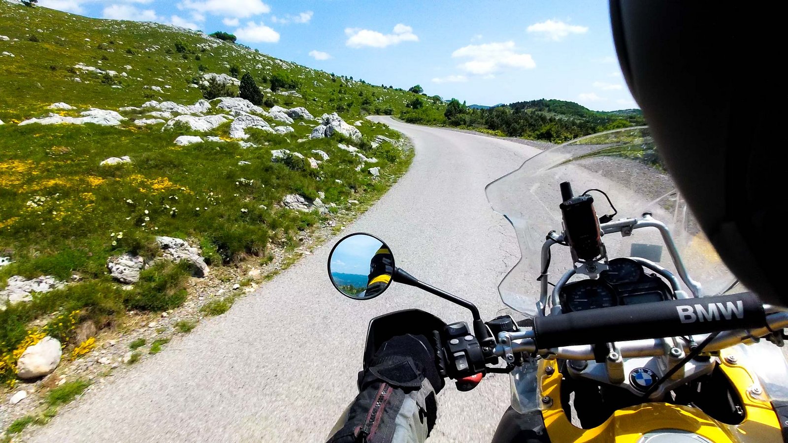 Und heute geht meine Reise weiter gen Süden, in das Land des schwarzen Berges. Montenegro. Die ersten Kilometer sind mühsam, da ich mal wieder der Zivilisation entkommen muss. Die Bucht von Kotor hat mich schon 2015 fasziniert, ein schönes Wiedersehen, doch heute biege ich links ab Richtung Norden ins Hochland des kleinen Adriastaates. Die neue Landstraße P11 verkürzt meine Fahrt enorm, meinem Navi war sie gar nicht bekannt. Dennoch gelingt es mir, die kleinen Nebenstraßen wiederzufinden, auf denen ich alleine unterwegs bin und die mir die Landschaftsbilder schenken, für die ich aufgebrochen bin. Blaue Seen und Blumenmeere rechts und links, es ist Frühling im südlichen Dinarischen Gebirge und ich bin glücklich, hier zu sein. Das Panorama wird schroffer und die schneebedeckten Gipfel mehren sich. Dennoch ist die Wärme der beginnenden Junisonne enorm, alle Lüftungsschlitze meiner Motorradkombi sind geöffnet, ich bin dankbar für jeden Seitenwind.