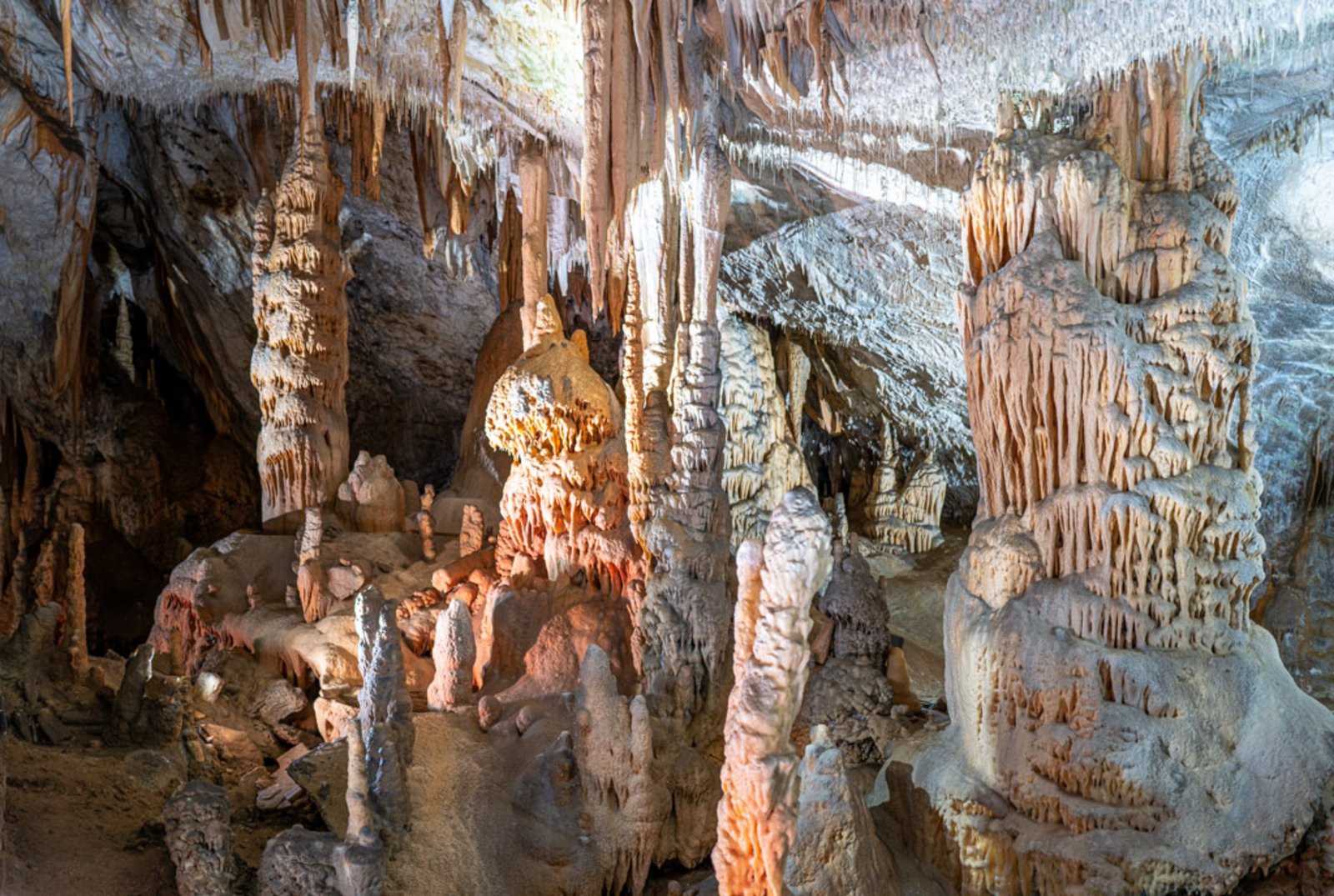 Die mit klarer Stimme von der sympathischen Höhlenführerin vermittelten Informationen finden keinen Zugang mehr in meine kognitiven Gehirnbereiche, ich lasse nur noch Größe, Formen und Farben der Jahrtausende alten Tropfsteingebilde auf mich wirken. Man nennt sie Stalaktiten, Stalakmiten, Kaskaden, Säulen oder Vorhänge. Ja, all dies begeistert mich. Die geschickt beleuchteten geologischen Meisterwerke sind mehr als eindrucksvoll in Szene gesetzt und zeigen in ihren Dimensionen, was Zeit ist: In meinem persönlichen, bescheidenen Menschenleben von knapp sechzig Jahren sind diese Stalaktiten hier etwa sechs Millimeter gewachsen. Sechs Millimeter! Ich komme mir unbedeutend vor, sehr unbedeutend in Anbetracht derartiger Zeiträume.