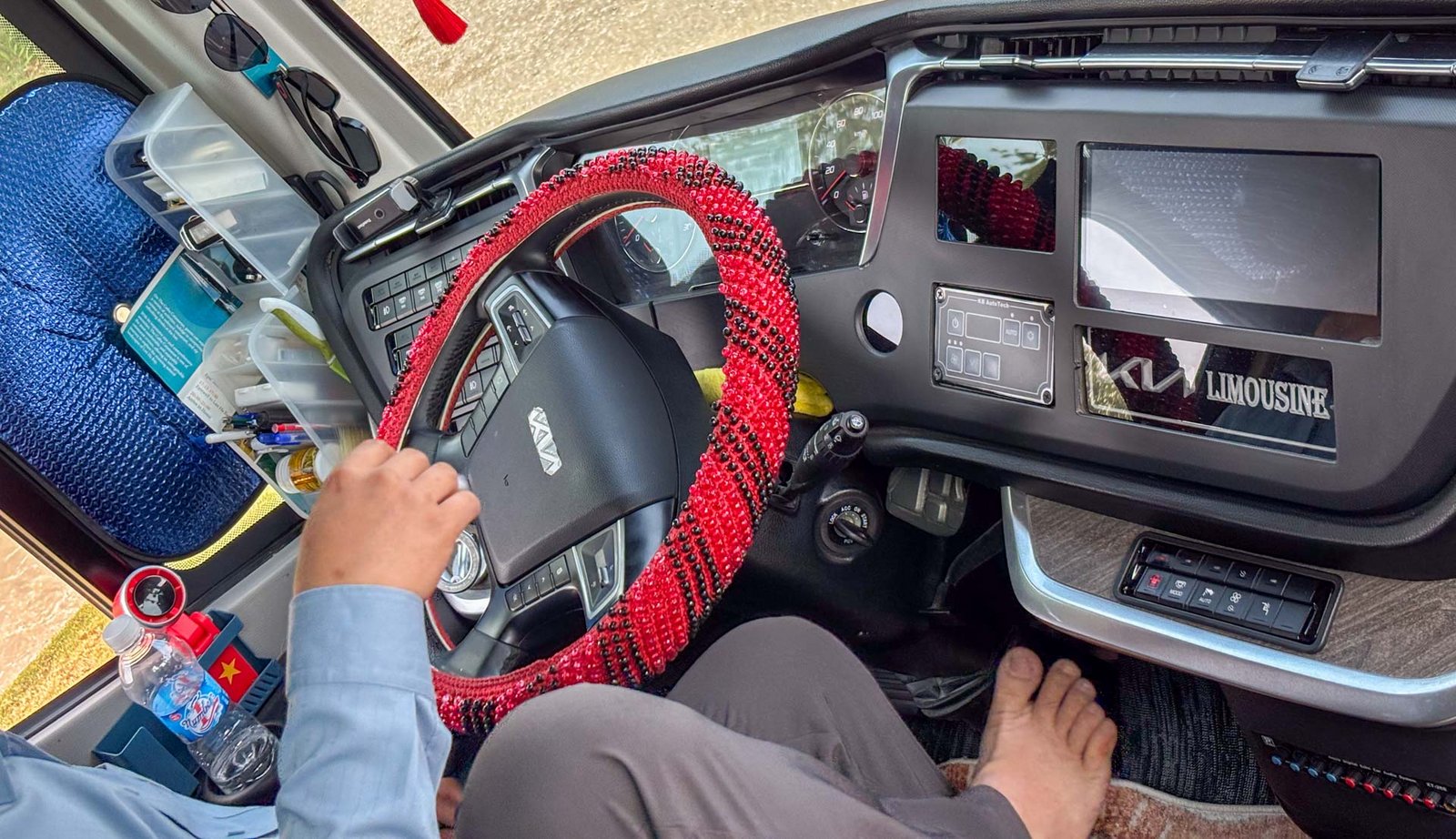 Die Rückfahrt von Cát Bà ist entspannt und geht schnell. Ich habe einen bequemen Platz mit guter Aussicht vorne im bunten Bus, aber die Wegeindrücke im Speckgürtel von Hà Nội und Hải Phòng sind eher wenig beeindruckend. Umso bunter geht es beim barfüßigen Busfahrer zu, der den heißesten Lenkradüberzug hat, den ich je gesehen habe: riesige Massagenoppen mit fast obszöner Ausprägung gegen die Ermüdung der Handflächen. Und tatsächlich macht er während der Fahrt Fingergymnastik. Was es so alles gibt auf der Welt.