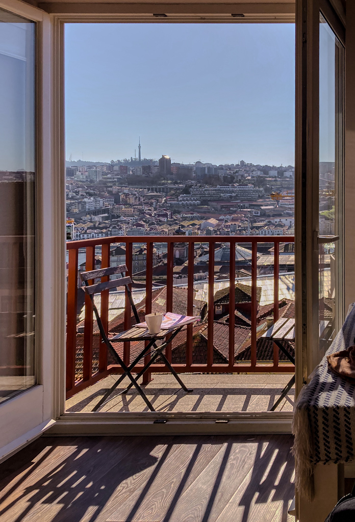 Mein Apartment mit Aussicht ist in der obersten Etage, genau so wollte ich das! Ich öffne die Balkontüren und Porto Velho begrüßt mich wie ein alter Freund es tun würde. Eine grandiose Aussicht umarmt mein Innerstes: "Schön, dass du da bist!" Die große Brücke nach Vila Nova de Gaia überspannt wie eh und je den dunklen Douro und ich atme die frische Luft, die von Ribeira heraufweht. "Olá cidade favorita! Wie schön wieder hier zu sein, wir haben über eine Woche Zeit füreinander!"