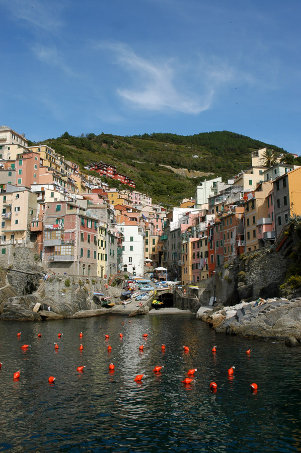 Genau genommen zwischen Punta Mesco im Norden und Punta di Montenero im Süden liegt die Cinque Terre. Frei übetrsetzt heißt das soviel wie "fünf Dörfer" oder "fünf Ortschaften". Gemeint sind die Orte Monterosso al Mare, Vernazza, Corniglia, Manarola und Riomaggiore. Wie eine Perlenkette aufgereiht liegen sie an der berühmten Steilküste Liguriens und sind mit dem Auto nicht erreichbar. Man muss oberhalb parken und den Rest bergab zu Fuß zurücklegen. Viel bequemer reist man allerdings mit dem Zug, der sich durch viele abenteuerliche Tunnel von Ort zu Ort schlängelt. Von Monterosso bis Riomaggiore sind es kaum mehr als zehn Kilometer und in den Sommermonaten drängeln sich hier leider Massen an Tagestouristen aus aller Welt. Etwas entspannter geht es auf den alten Wanderwegen zu, über die die Orte etwas oberhalb verbunden sind und die eine prächtige Aussicht hinab auf das Meer bieten. Da der ganze Küstenstreifen Ende der 1990er zum Weltkulturerbe gekürt wurde, darf hier nichts verändert werden. Und findet man mal Ruhe vor den vielen Besuchern, ist es tatsächlich eine wahre Freude, sich in den winzigen Gassen auf einen Café niederzulassen und das pittoreske Ambiente auf sich wirken zu lassen. Zahlreiche Ausflüge, beispielsweise nach Genua oder Portofino, sind mit dem Zug sehr bequem und schnell zu organisieren und überaus lohnenswert.